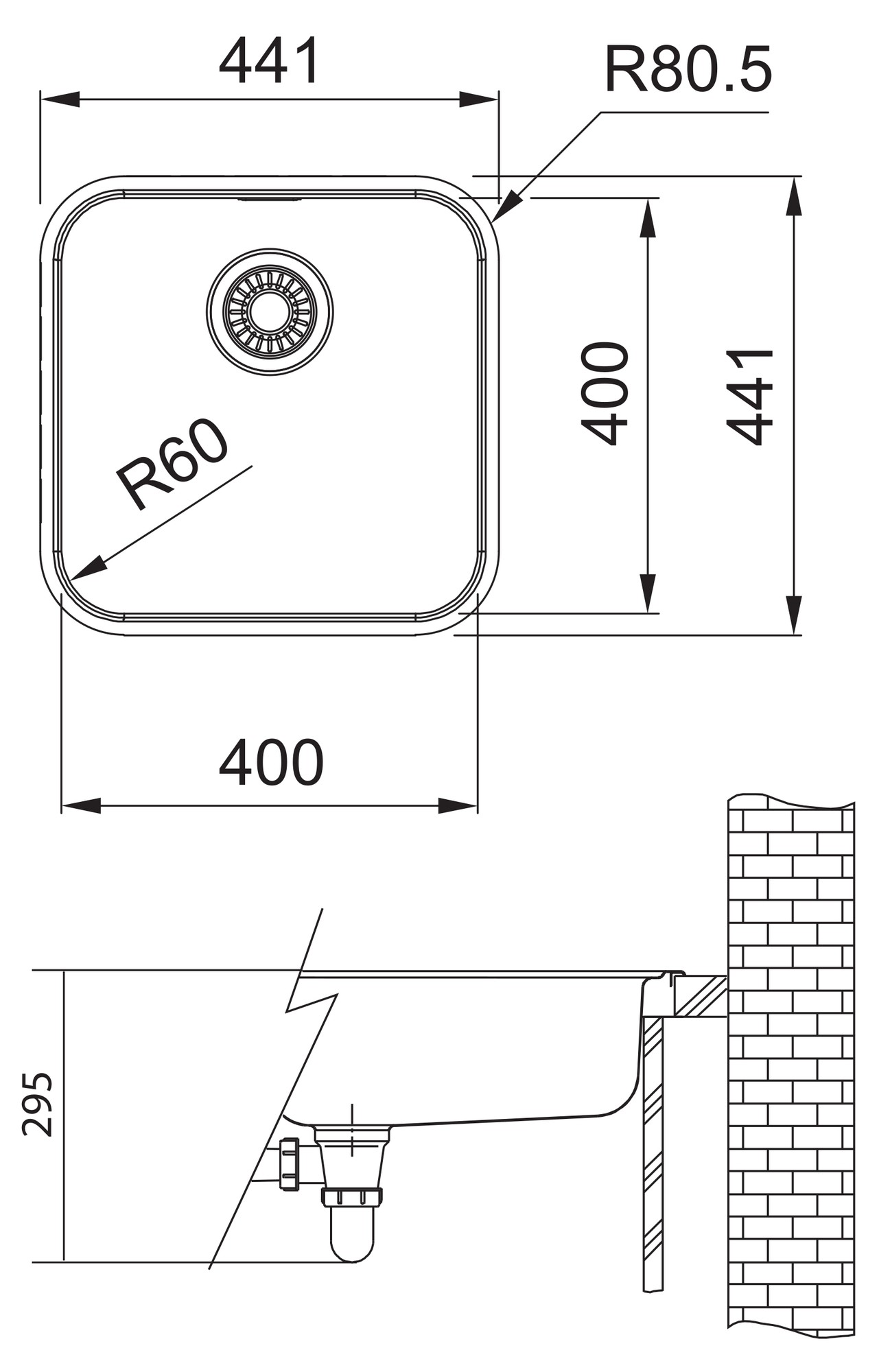 Rozměr dřezu: 441 x 441 mm