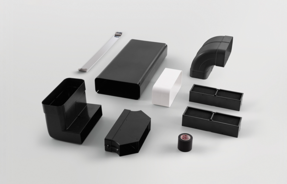 Sada obsahuje uhlíkové filtry REVOLUTION a potrubí zakončené výduchem pod skříňkou.