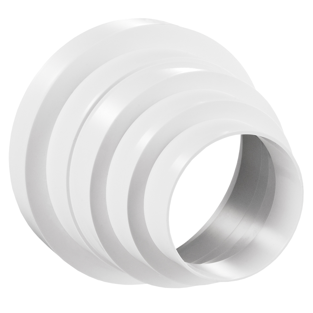 Kruhová redukce vícenásobná Ø 80 - 100 - 120 - 125 - 150 mm Univerzální plastová redukce pro napojení vzduchovodů různých průměrů Ø 80 mm, Ø 100 mm, Ø 120 mm, Ø 125 mm, Ø 150 ...Více informací