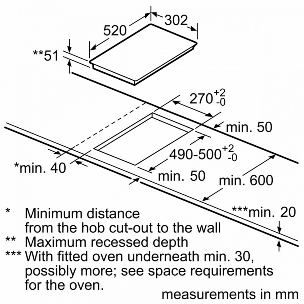 min. tloušťka pracovní desky: 30 mm