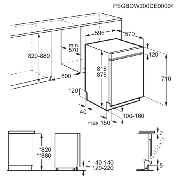 Vestavné rozměry V(min/max)xŠxH (mm): 820/880 x 600 x 550