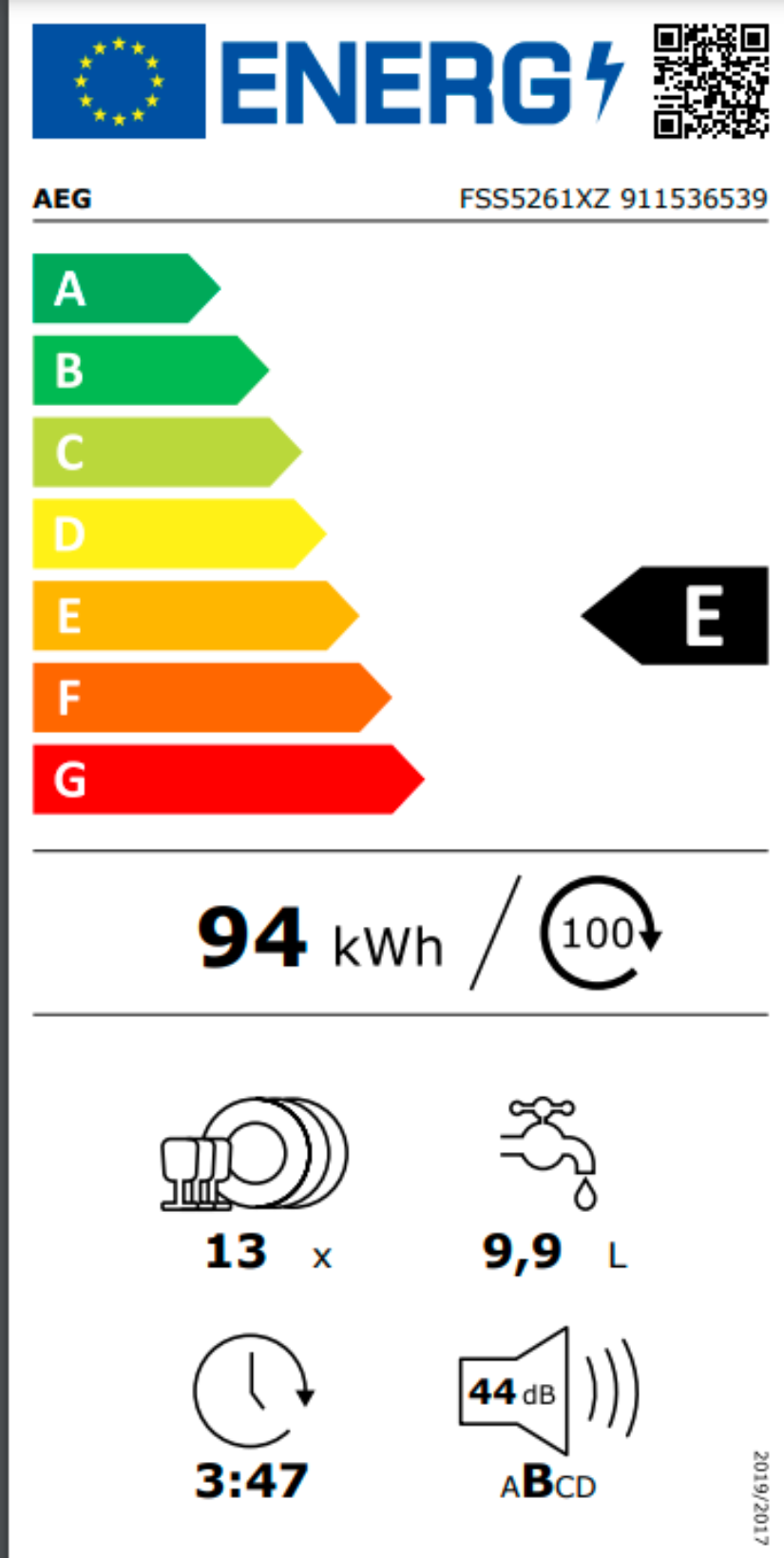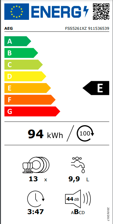 Kapacita mytí: 13: Podle normy IEC pro sadu nádobí. Jednou sadou nádobí je podle této normy: talíř, hluboký talíř, dezertní talíř, sklenice, čajový šálek s podšálkem, nůž, vidlička, polévková lžíce, dezertní lžíce a lžička.