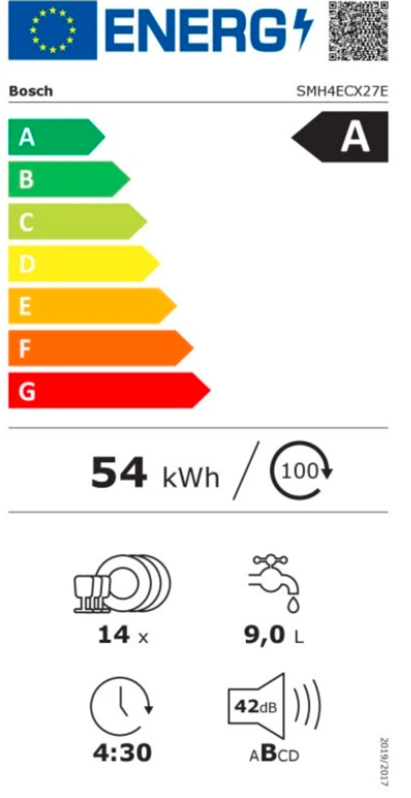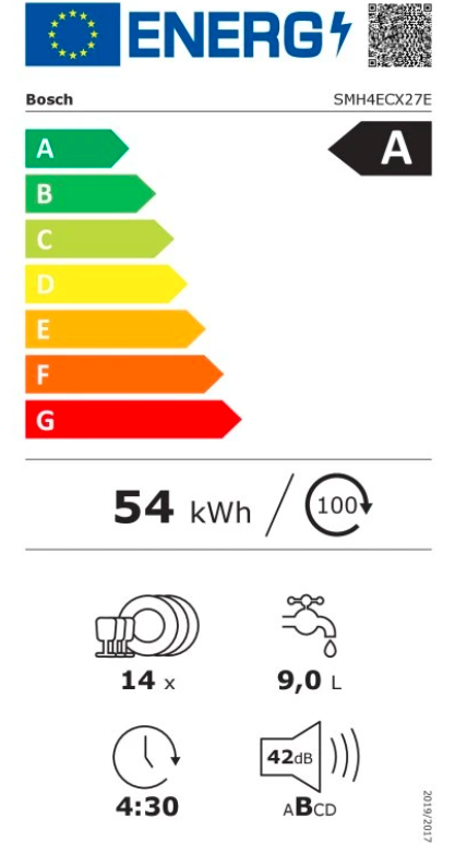 Výkon a spotřeba třída energetické účinnosti:¹ A energie² / voda³: 54 kWh / 9 l kapacita: 14 sad nádobí doba trvání programu:⁴ 4:30 h:min hladina hluku: 42 dB(A) re 1 pW třída ...Více informací