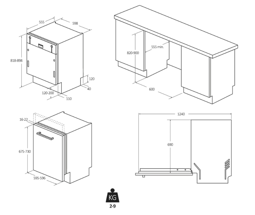 Myčky nádobí, Plně integrovaná, 16 sad nádobí, Energetická třída C, Pokročilé dálkové ovládání (Wi-Fi + BLE), Š x H x V (mm) 597x555x818