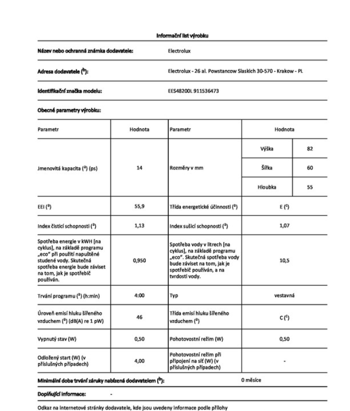 Energetické parametry myčky 2021