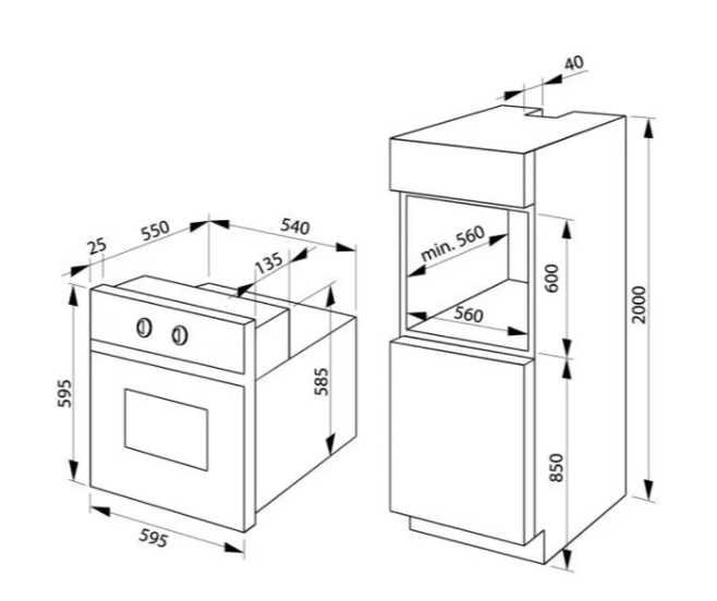 | Výška pro vestavbu cm | 60 |