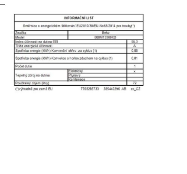 | Objem trouby L | 72 |