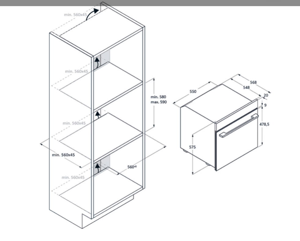 Výška pro vestavbu cm 59