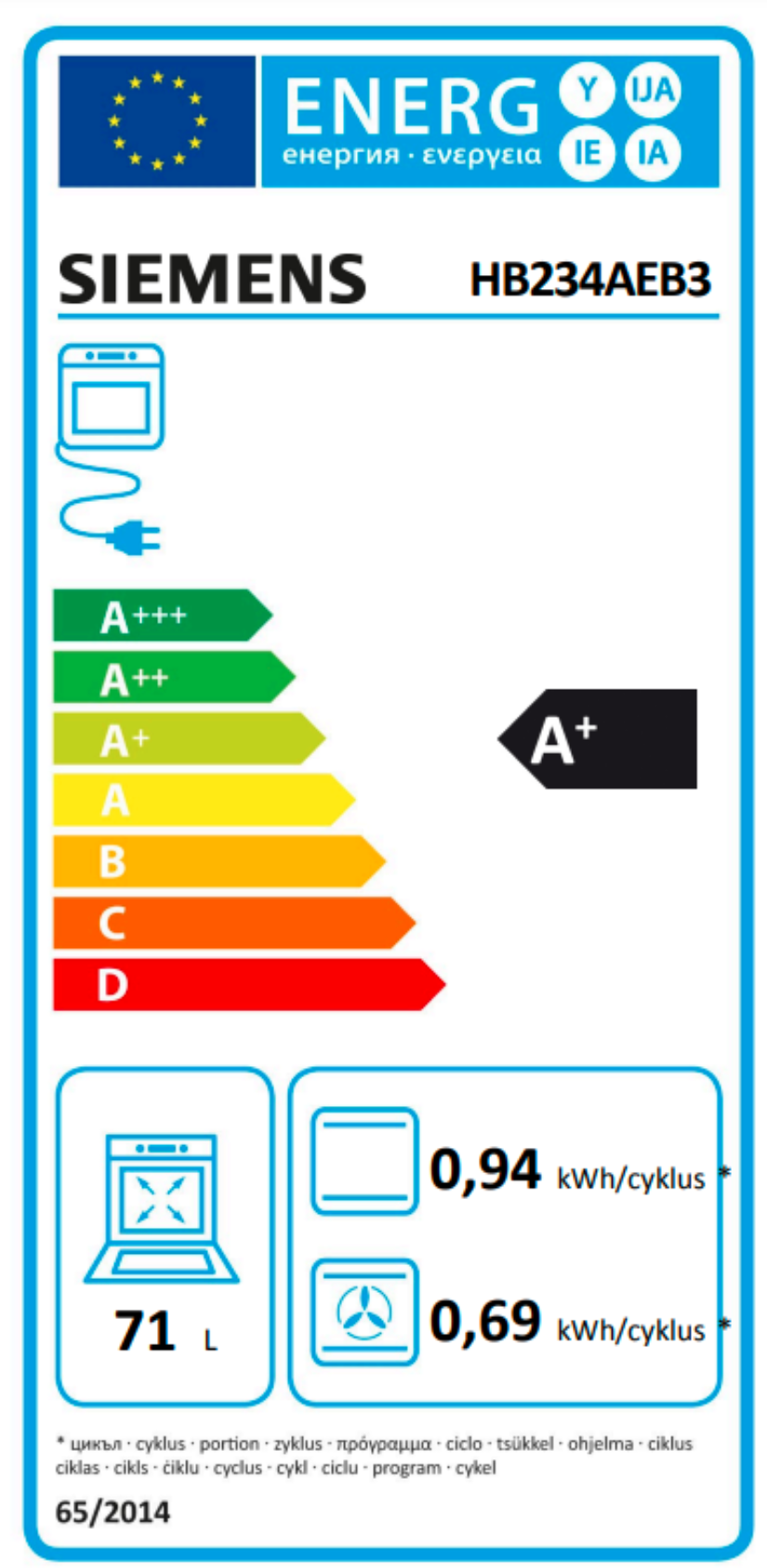 Užitný objem (varný prostor) - NOVINKA (2010/30/ES)
