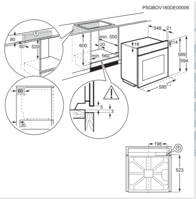 | Výška pro vestavbu cm | 60 |